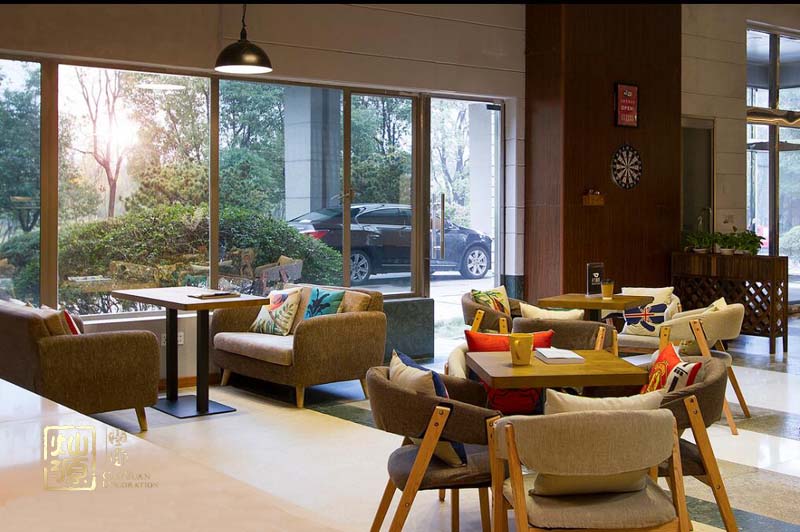 南寧咖啡館設計裝修卡座好是有兩種,除了橫木吧臺的長腳凳外,舒適的沙發也是必不可少的,至于兩種卡座的比例配置,要根據店內定位來決定,如果是比較商務的咖啡館,硬座卡座要多于沙發,因為客人很大程度是去談公事或者其他商務聚會,比較正式些。走休閑小資路線的咖啡廳可以設置多點沙發。正式點的卡座會增加翻臺率,軟座可以增加店內人氣,其中的比例還需要各位業主自己去調整。